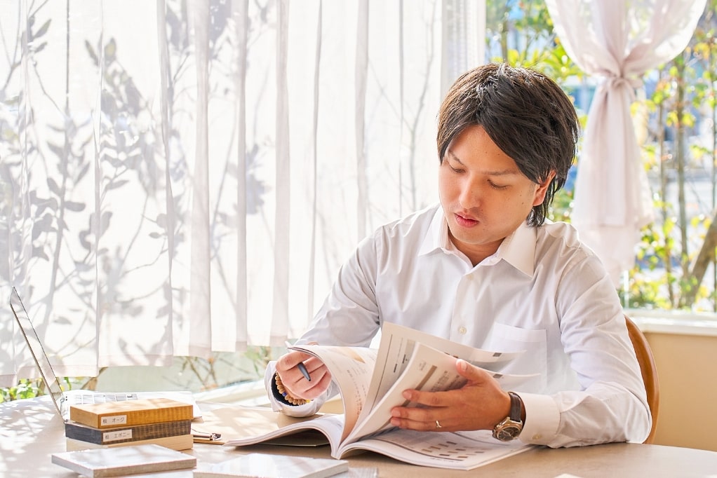 お客様はやっぱりお家作りが初めての方が多くて、最初はとても緊張されている方が多いです。なので、固い雰囲気にならないように日常会話も織り混ぜながら、「この人ならいいのを提案してくれそうだな」と思えるような初対面を意識しています。